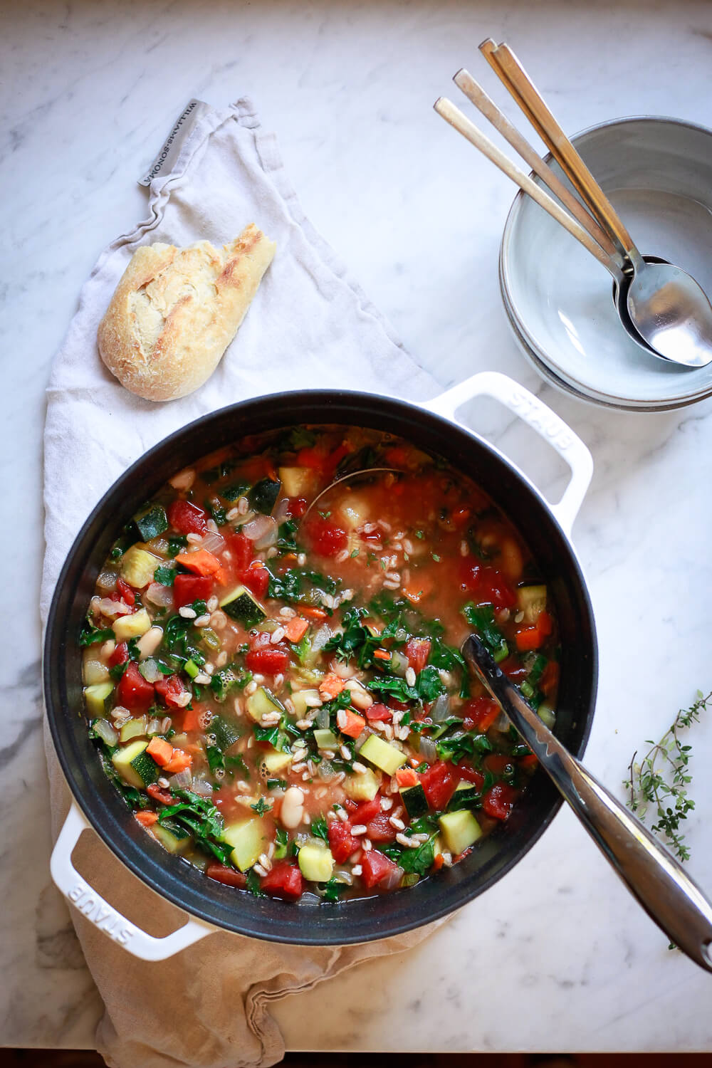 Vegetable soup! A hearty Italian vegetable soup loaded with veggies, farro, white beans and kale.