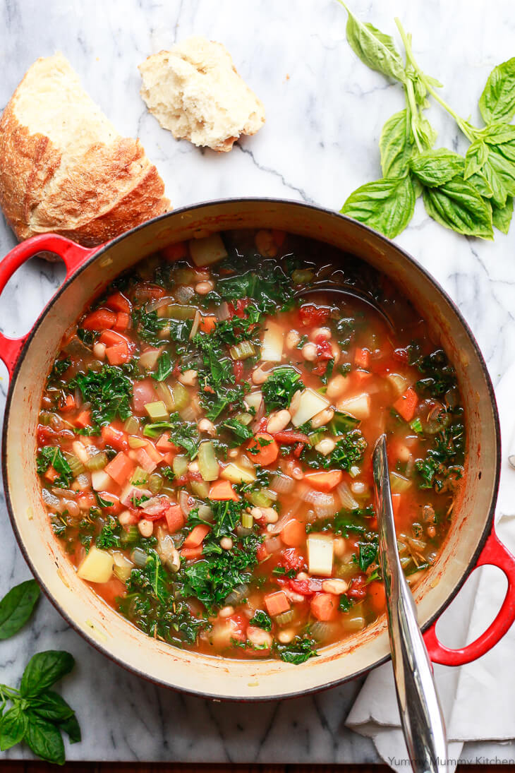 A hearty and healthy vegetable soup loaded with white beans and kale.